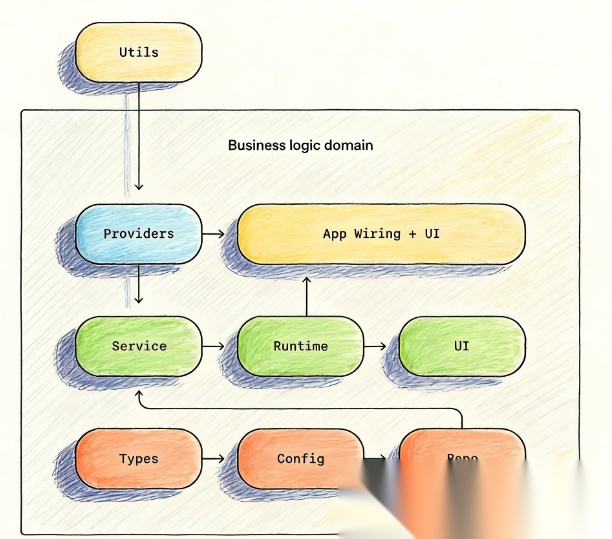 AI 在有严格边界和可预测结构的环境中工作效率最高,因此要围绕刚性架构模型构建应用:将每个业务域划分为Types→Config→Repo→Service→Runtime→UI的固定分层,代码仅能 “向前” 依赖,跨域核心能力(认证、遥测、功能开关等)只能通过唯一的 Providers 接口接入,无任何例外。这些约束通过 AI 自主生成的自定义 linter 和结构化测试机械执行,从底层避免架构漂移。
