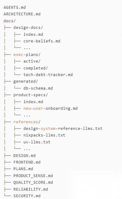 建议将核心指引浓缩为百行左右的文档(如 AGENTS.md)作为 “地图”,再搭建结构化的 docs 目录作为详细知识库,包含设计文档、执行计划、产品规范、技术参考等子模块。同时用 linter 和 CI 做机械验证,让专门的 “园丁 Agent” 定期扫描、修复陈旧文档,保证知识库的时效性和准确性。
