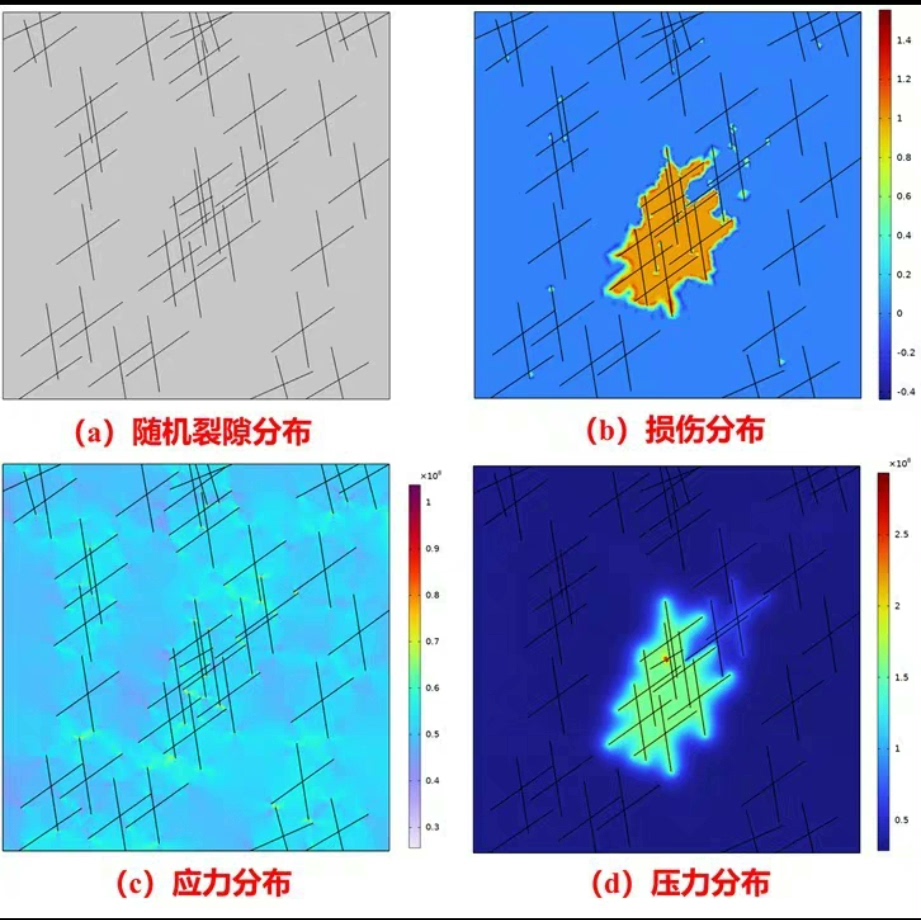 裂缝在岩石里头的扩展,从来都不是直来直去的。搞过压裂模拟的应该都懂,裂缝遇到天然裂隙要么分岔要么转向,这时候用COMSOL搞损伤耦合模型就得考虑流体-固体-损伤三者的混合双打。今天咱们拿个实际案例拆解,顺便甩点MATLAB生成裂缝网络的野路子代码。