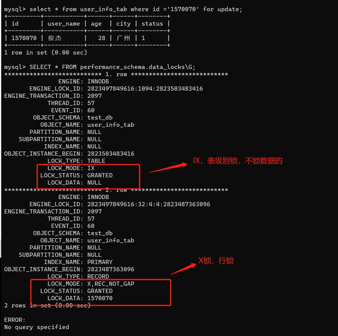 有些时候,我们看某个SQL加了什么锁,可以这样(MySQL 8.0+版本):