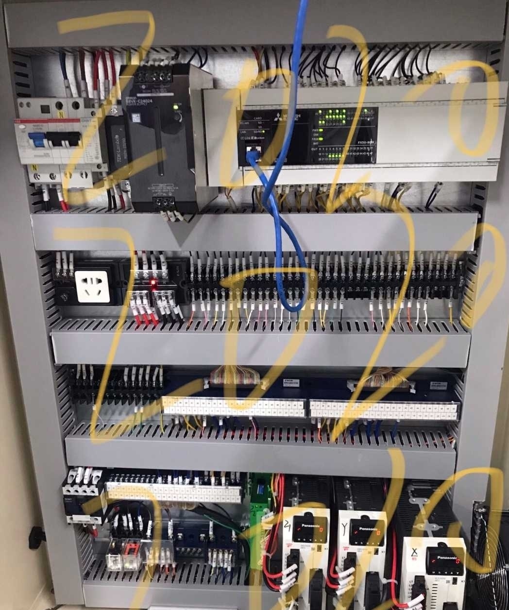 接线方面,松下伺服的CN1端口接法要特别注意,三菱的差分输出得接成集电极方式。步进驱动器这边简单些,但脉冲信号线还是加了磁环抗干扰。整套图纸用Eplan出的,把伺服参数配置直接标注在线号旁边,现场调试省事不少。
