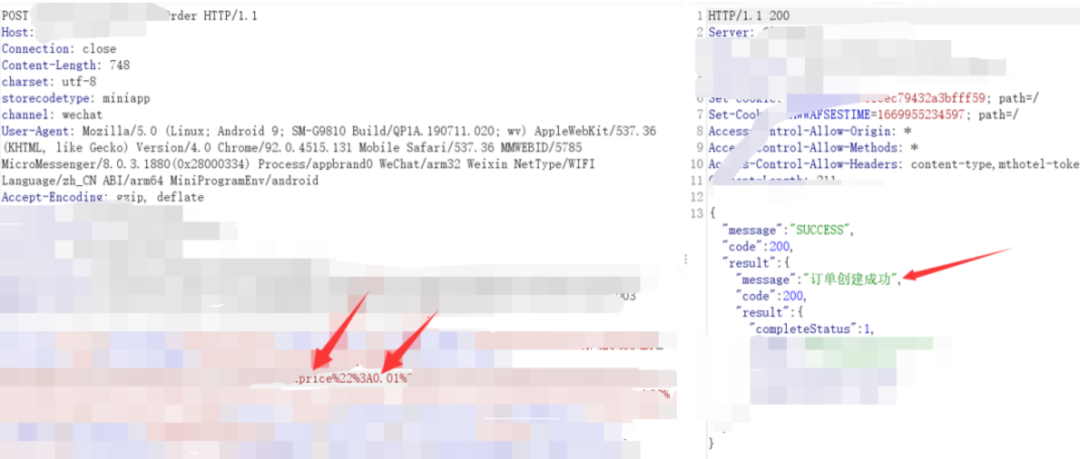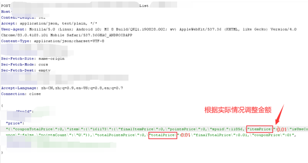 步骤: 在提交订单时进行抓包,修改支付的金额或折扣等相关数据。