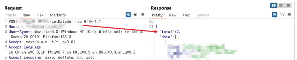 登录系统后点击查看自己的信息,获取到接口xxx/getDataSelf.do,查询出两条数据: