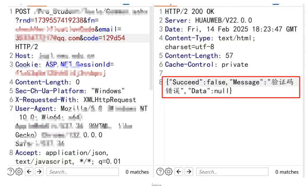 可以看到返回包显示验证码不正确(废话,这是必然的),但是,我们又观察返回包似乎没有啥鉴权参数啥的