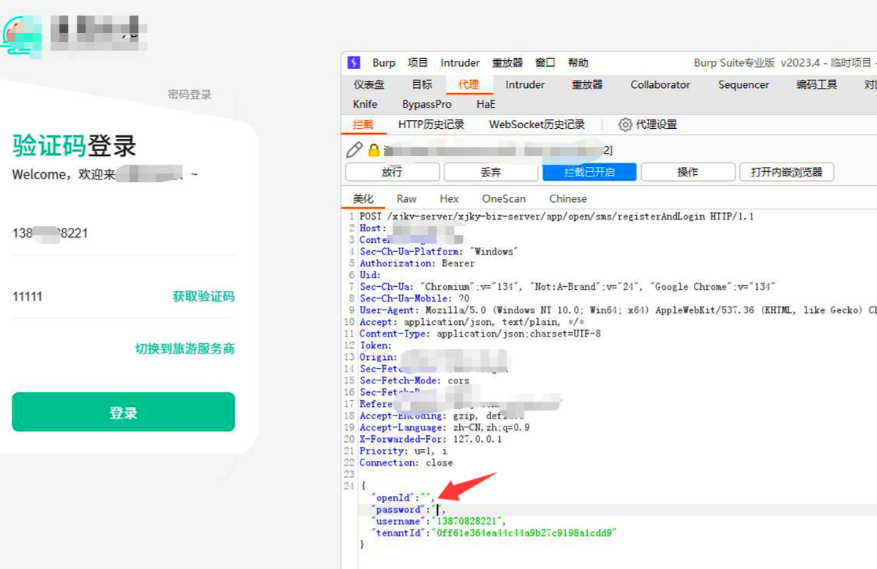 任意用户注册攻击置空验证会产生token,那么如果是我拿到已登录的账户,在此登录口同样进行置空验证码操作,是否也会返回对应号码token呢