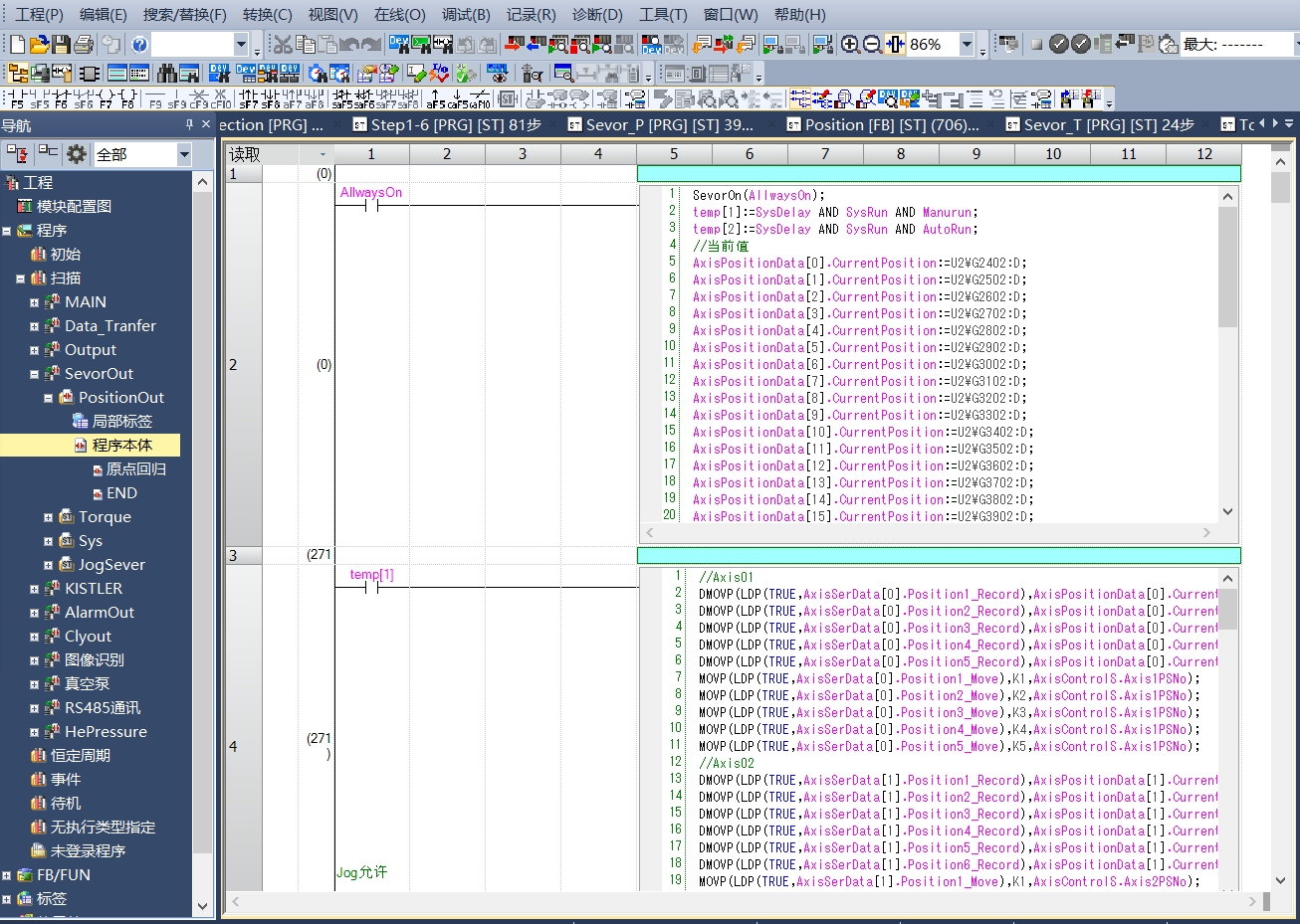 本项目的PLC程序采用了ST语言和梯形图编写。ST语言类似于高级编程语言,具有较强的逻辑性和结构性,适合编写复杂的控制算法。而梯形图则以图形化的方式呈现逻辑,直观易懂,方便电气工程师快速上手。这两种编程方式相互结合,充分发挥各自优势,使得程序的开发和维护更加高效。