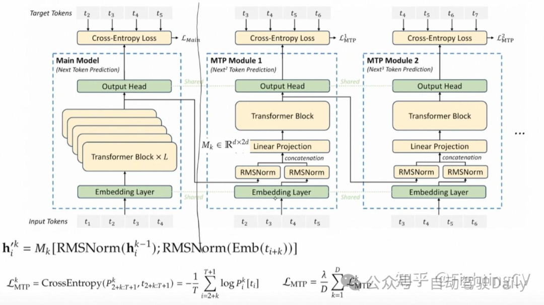 DeepSeek-V3 创新性地采用了 MTP 目标,将预测范围扩展到每个位置的多个后续 token。