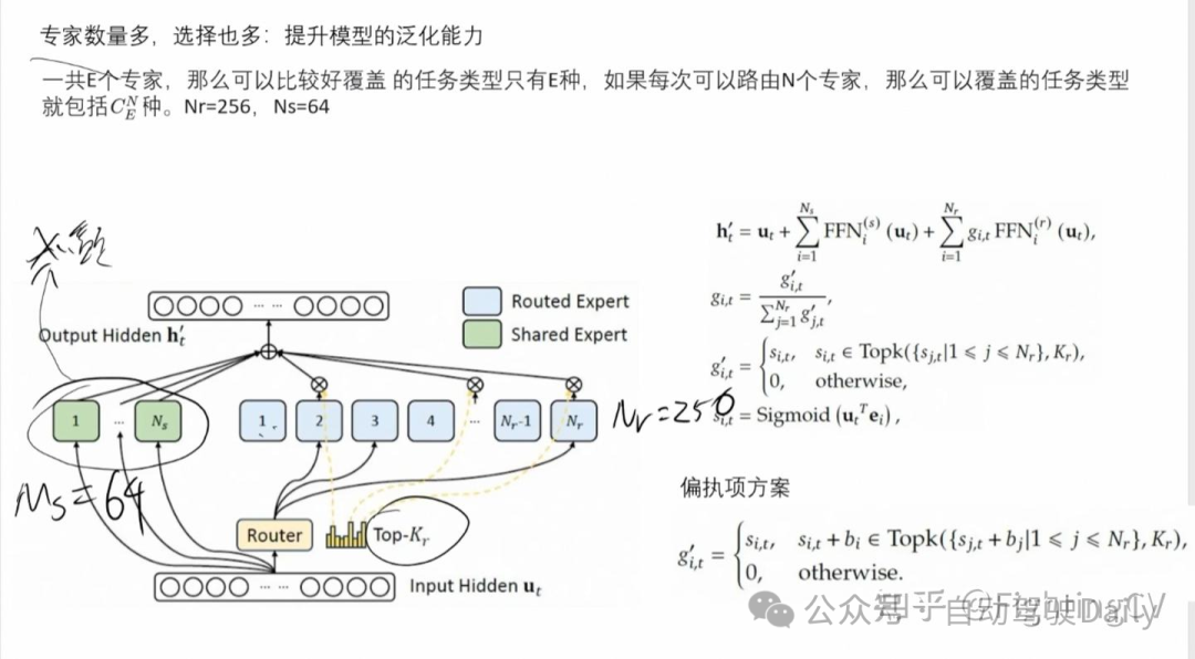 共享和独立专家;考虑每个专家的学习概率;考虑每个node的负载均衡
