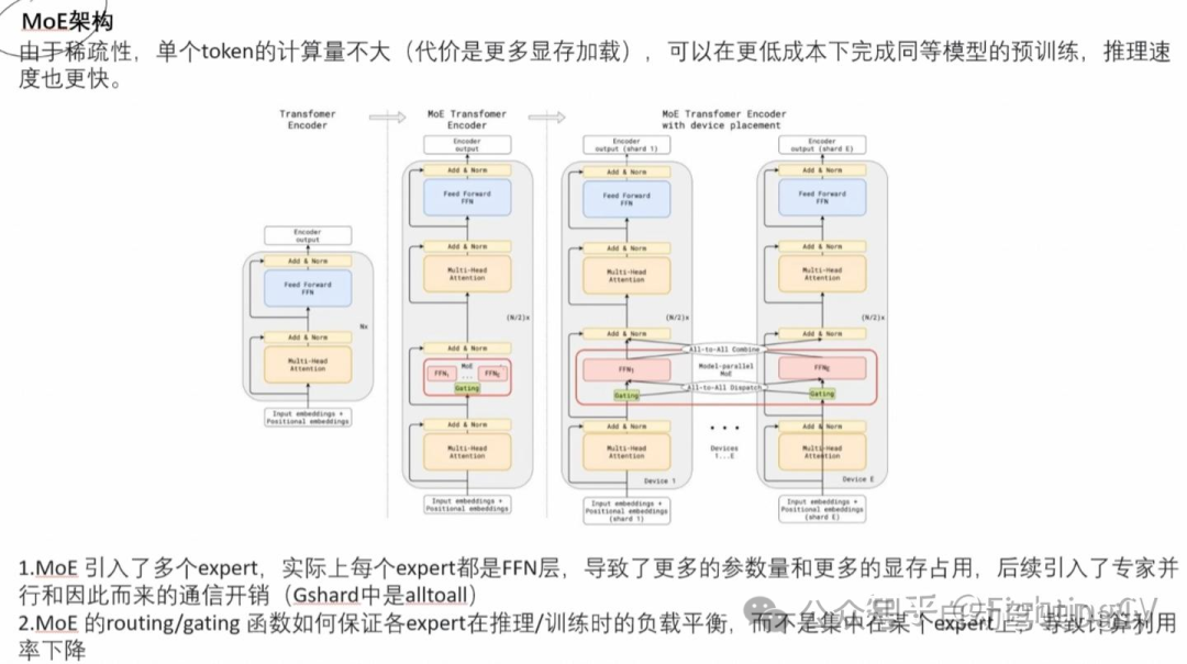 在前馈网络(Feed-Forward Networks, FFN)部分,DeepSeek-V3 采用了 DeepSeekMoE 架构。相比传统的 MoE 架构(如 GShard),DeepSeekMoE 采用了更细粒度的专家分配机制,并创新性地将部分专家设置为共享专家。