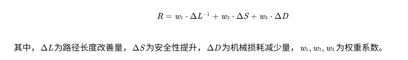 - 效果:QL-GA缩短总路径35%,碰撞距离满足工程要求(≥580mm)。